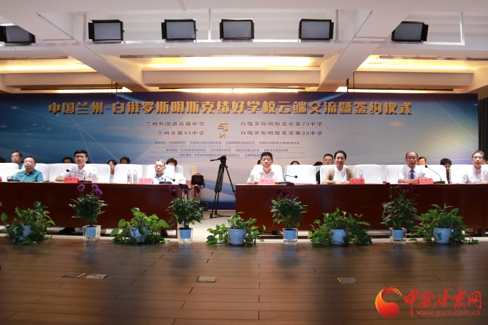 在蘭州外國(guó)語(yǔ)高級(jí)中學(xué)舉行的此次“中國(guó)蘭州—白俄羅斯明斯克結(jié)好學(xué)校云端交流暨簽約儀式”上,蘭州外國(guó)語(yǔ)高級(jí)中學(xué)與明斯克市第23中學(xué)、蘭州市第33中學(xué)與明斯克市第33中學(xué)校長(zhǎng)及主要負(fù)責(zé)人經(jīng)過(guò)交流后,分別簽署締結(jié)“百校結(jié)好”項(xiàng)目學(xué)校協(xié)議,正式建立友好合作關(guān)系。今后將在師生互訪、教師培訓(xùn)、課程交流、國(guó)際學(xué)生社團(tuán)建設(shè)等方面開(kāi)展合作交流。之后,四所學(xué)校學(xué)生還分別表演了富有各國(guó)傳統(tǒng)文化和民族特色的文藝節(jié)目。