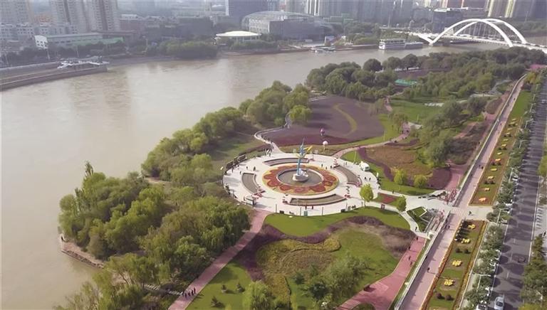 盛夏時節(jié),晴空萬里,漫步在黃河之濱,遠處白塔巍巍、水車悠悠,鐵橋橫臥,游船穿行;眼前的黃河時而湍急、翻滾,浩浩蕩蕩奔流向前;時而寧靜、蜿蜒,如母親溫柔的懷抱,包容著城市的喧囂。景隨步移,公園、廣場、小游園、雕塑景觀等星羅棋布,形成了水天一色、詩情畫意的濱水空間。