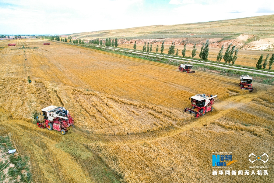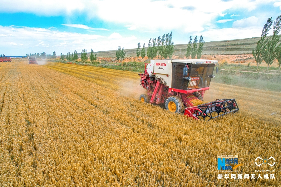 秋天是收獲的季節(jié),甘肅省張掖市民樂縣洪水鎮(zhèn)費(fèi)寨村的麥田里,金燦燦的麥穗隨風(fēng)搖曳,一輛輛收割機(jī)來(lái)回穿梭,收割、脫粒、裝車,一氣呵成。(拍攝、制作:王曉涇 陳思宏 曹芬華)