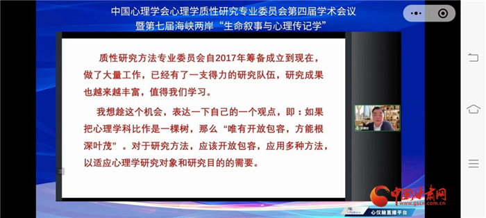 樂(lè)國(guó)安在回顧質(zhì)性心理學(xué)同仁們?cè)谶^(guò)去幾年的努力和取得的成績(jī)的基礎(chǔ)上,提醒大家,在方法的應(yīng)用上,要秉承開放的態(tài)度,“唯有開放包容,方能根深葉茂”。