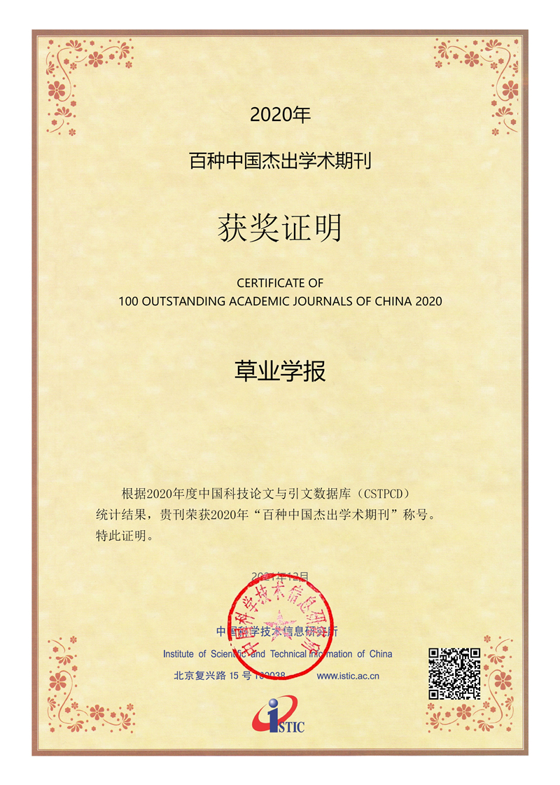 12月29日,中國科學(xué)技術(shù)信息研究所發(fā)布《2022年中國科技論文統(tǒng)計(jì)報(bào)告》,并評選出“2021年度中國百種杰出學(xué)術(shù)期刊”,其中甘肅省2種,分別是:中國草原協(xié)會(huì)、蘭州大學(xué)草地農(nóng)業(yè)科技學(xué)院主辦的《草業(yè)學(xué)報(bào)》,中科院寒旱所主辦的《高原氣象》。