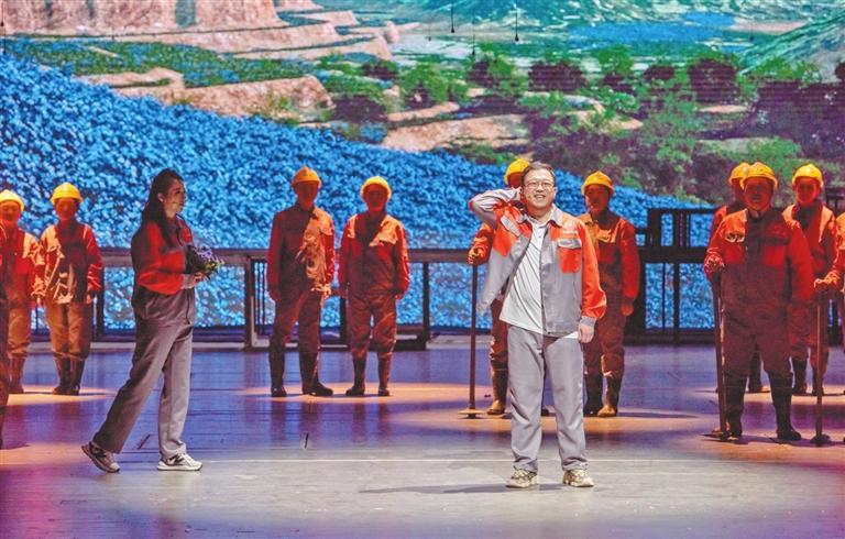 在兩個小時的演出中,全體演職人員以群像式表演,將蘭渝鐵路建設(shè)者的科技創(chuàng)新精神、愚公移山精神、大國工匠精神完美展現(xiàn)在舞臺上。“那座山,不太高,胡麻花開山上頭,山根根,開洞洞,火車鉆進山里頭……”伴隨著悠揚的謝幕音樂,劇場內(nèi)爆發(fā)出了經(jīng)久不息的熱烈掌聲。
