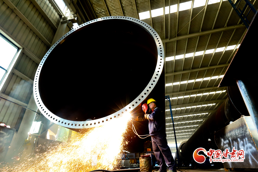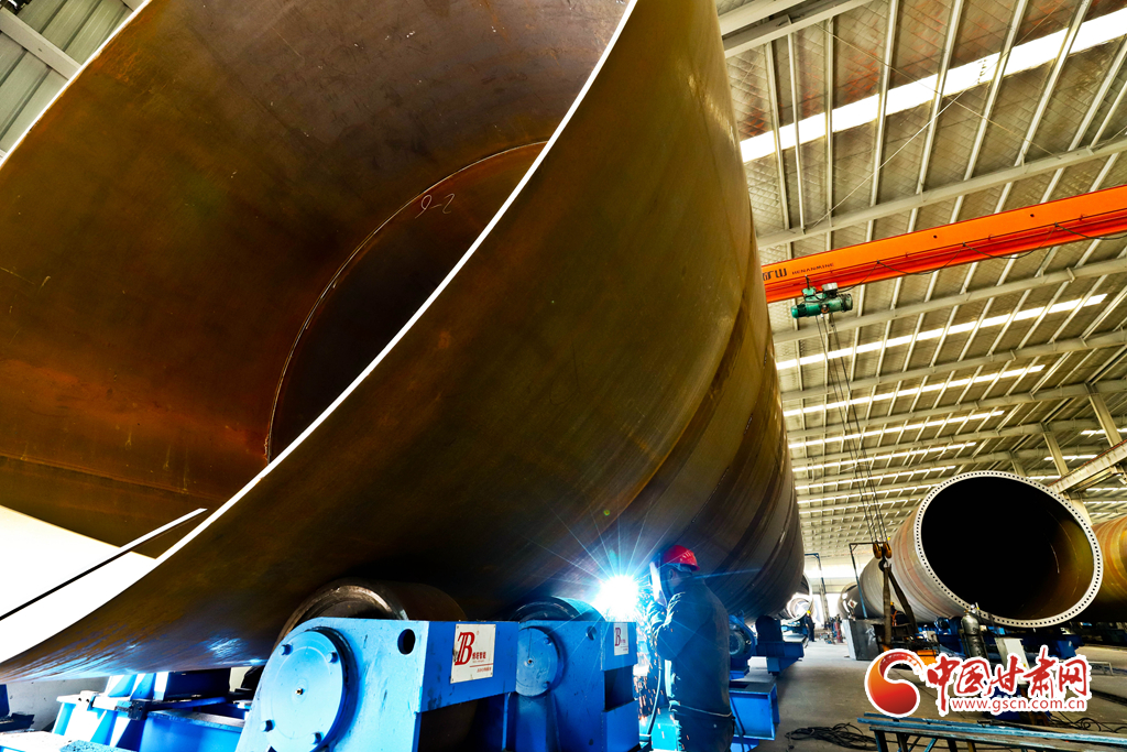 近日,在高臺縣一風電裝備生產(chǎn)基地內(nèi),工人們正在加快訂單生產(chǎn),進行設備調試,保障風力發(fā)電機組的生產(chǎn)運行。
