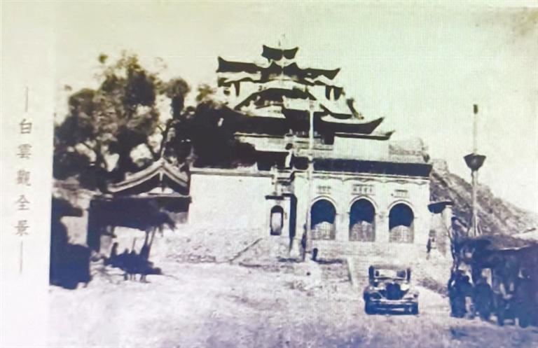 1935年5月,邵元沖考察西北途經蘭州,專程赴崔家崖白云觀參訪?!段鞅彪S軺記》載:“依極壽山麓,建白云觀,高三百余級,黃流襟帶,榆柳成蔭,書長無事,凝坐其間,聆水聲潺湲,聽鳥語啾啁,亦足滌塵煩,消炎夏。”邵元沖為此特作《題崔家崖白云觀》詩曰:“玄都峙重崖,清磬林間響。俯瞰大河橫,寒流走混□。柳晚翠煙浮,閑云獨來往。”《西北攬勝》一書中,專門刊載兩幅崔家崖白云觀照片,照片說明曰:“北臨黃河,南接蘭山,形勢雄壯,殿宇倚坡上筑,宏麗精巧,且曲徑回廊,引人入勝,亦蘭垣名勝之一也。” 從老照片中可見,崔家崖白云觀依山而建,頗具氣勢,而且交通便利,邵元沖一行乘坐的小汽車可以直達觀前。