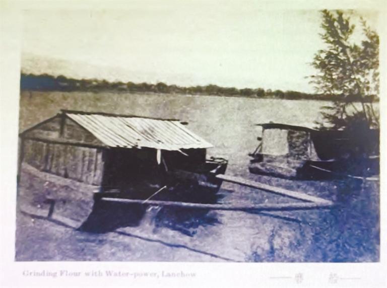最后,還有一處雖然不算名勝古跡但卻與百姓生活息息相關的老蘭州“冷門”景觀,那就是金城關船磨。顧名思義,所謂船磨就是設在船上的磨坊?!段鞅睌垊佟芬粫杖肓伺臄z于1935年的蘭州黃河岸邊的船磨照片,照片說明曰:“蘭垣金城關外,有二小舟,連系河邊如墩船。船以磨粉,故名船磨。其法在船旁置一木輪,接於船中之磨,亦恃水力之推動以磨粉。每磨一盤,一晝夜可制面粉千斤,較水磨房尚省開渠引水之費,亦巧思也。”