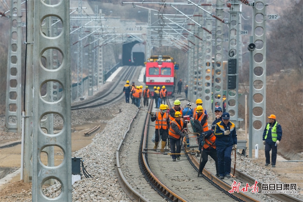 初春時節(jié),渭河兩岸春寒料峭。換軌車的轟鳴聲在蜿蜒的渭河谷地回蕩,施工隊(duì)伍不分晝夜,爭分奪秒地在橋梁、山谷和隧道里鏖戰(zhàn),精心為線路大動脈“舒筋壯骨”。隨著線路更換新軌施工作業(yè)接近尾聲,隴海鐵路將再次恢復(fù)“滿滿元?dú)?rdquo;,持續(xù)保障安全運(yùn)輸生產(chǎn)。
