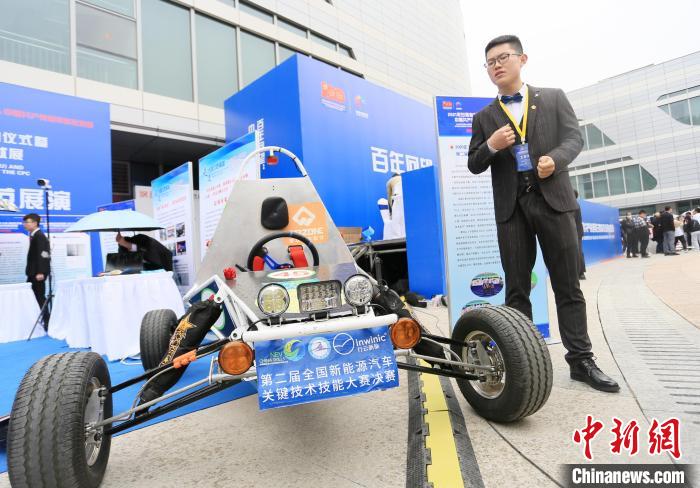 圖為甘肅高校學(xué)子展示新能源汽車輕量化技術(shù)。(資料圖)高展攝