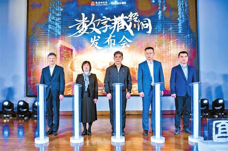 在當(dāng)日舉辦的發(fā)布儀式上,國(guó)家文物局科技教育司司長(zhǎng)羅靜、甘肅省文物局副局長(zhǎng)白堅(jiān)、敦煌研究院院長(zhǎng)蘇伯民、騰訊集團(tuán)市場(chǎng)與公關(guān)副總裁李航、騰訊互娛副總裁崔曉春共同按下啟動(dòng)按鍵,宣布“數(shù)字藏經(jīng)洞”上線。即日起,公眾可以通過“云游敦煌”小程序或“數(shù)字敦煌”官網(wǎng),直接登錄“數(shù)字藏經(jīng)洞”。