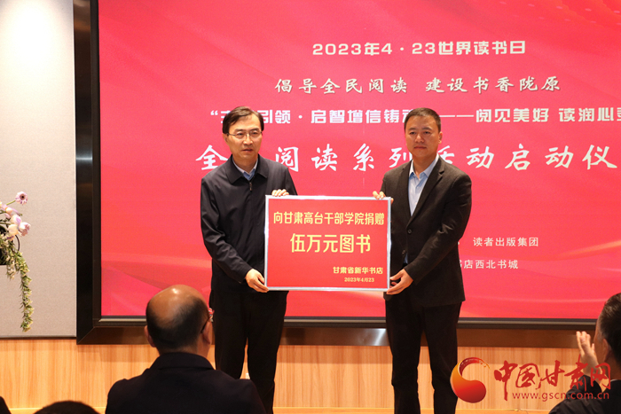 啟動儀式上,讀者出版集團黨委書記、董事長梁朝陽向高臺干部學(xué)院捐贈圖書并宣布系列活動正式啟動。讀者出版集團黨委委員、副總經(jīng)理王光輝與甘肅省新華書店黨委書記、董事長張曉東向讀者代表“甘肅好人”景正紅、“優(yōu)秀護士”嚴曉麗、“公安之星”王令成、“優(yōu)秀教師”王云芳捐贈圖書。