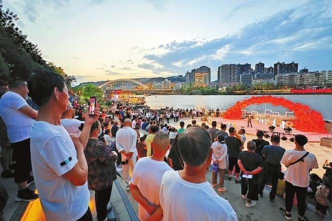 為應對游客人數(shù)激增的情況,蘭州黃河生態(tài)旅游開發(fā)集團及時延長“夜游黃河”以及旗下各景區(qū)景點運營時間,白塔山碼頭停運時間從22:30延長至24:00,蘭州港和鹽場堡碼頭停運時間從22:00延長至23:00;水墨丹霞景區(qū)從17:30售票時間延長至19:30,黃河樓景區(qū)從21:00閉園延長至22:00閉園,全面保障游客游得開心、玩得舒心。
