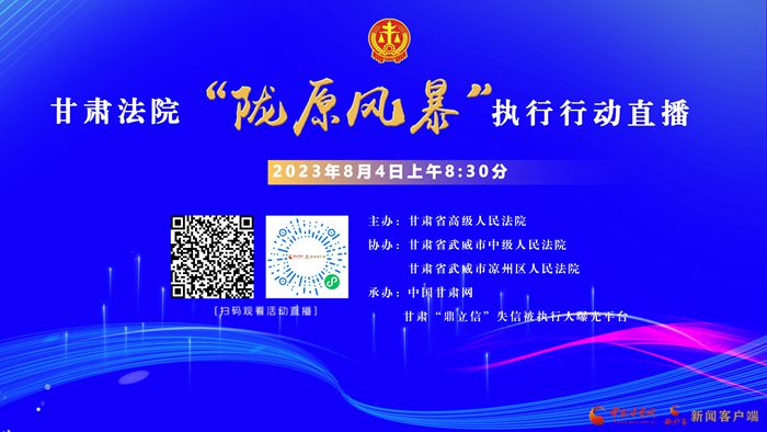 甘肅省高級人民法院執(zhí)行局副局長季學(xué)勇介紹,“隴原風(fēng)暴執(zhí)行行動(dòng)”將持續(xù)至今年年底,期間,每月將開展至少2次鼎立信“隴原風(fēng)暴行動(dòng)”直播活動(dòng),在推動(dòng)執(zhí)行工作的同時(shí),為廣大網(wǎng)友答疑解惑,向社會(huì)傳遞人民法院解決執(zhí)行難的毅力和決心。