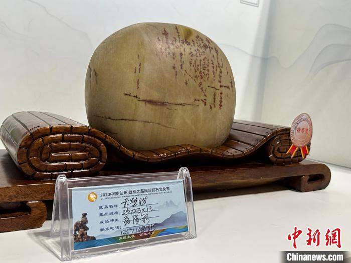 8月3日——7日,2023中國(蘭州)絲綢之路國際賞石文化節(jié)在甘肅國際會展中心舉行。圖為名為《和氏璧》的黃河石。楊娜 攝