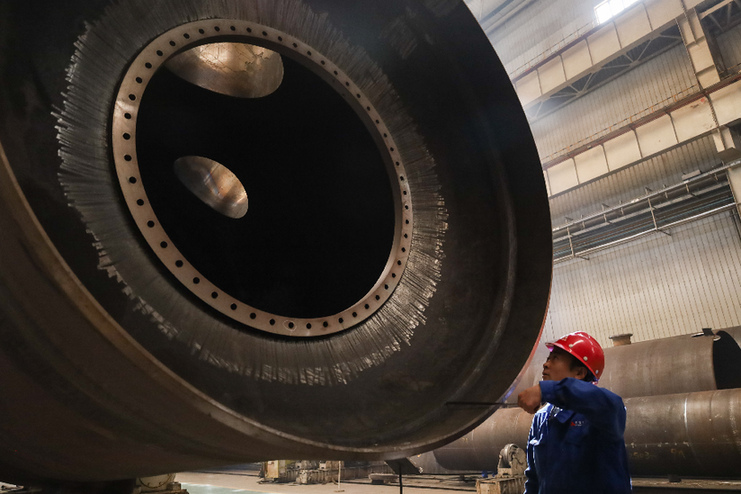 工人在蘭州新區(qū)蘭石集團高端裝備產(chǎn)業(yè)園的生產(chǎn)車間作業(yè)。新華社記者 馬希平 攝