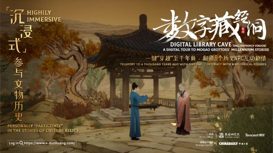 敦煌藏經(jīng)洞是20世紀(jì)最重要的考古大發(fā)現(xiàn)之一,曾出土6萬(wàn)余件古代文獻(xiàn)和藝術(shù)品,被譽(yù)為“打開(kāi)世界中世紀(jì)歷史的鑰匙”?;诓亟?jīng)洞出土文物和敦煌石窟等相關(guān)研究,敦煌學(xué)逐漸成為一門(mén)“國(guó)際顯學(xué)”。一直以來(lái),敦煌研究院致力于聯(lián)動(dòng)社會(huì)力量,利用現(xiàn)代數(shù)字技術(shù)推動(dòng)文化遺產(chǎn)數(shù)字化和弘揚(yáng)優(yōu)秀傳統(tǒng)文化。“數(shù)字藏經(jīng)洞(國(guó)際版)”在共建“一帶一路”倡議提出十周年之際率先推出,以“超時(shí)空參與式博物館”這一創(chuàng)新形態(tài),豐富了以往以文化展覽、學(xué)術(shù)論壇等為主的交流體驗(yàn)?zāi)J?,綜合運(yùn)用游戲科技,為海外用戶(hù)帶來(lái)全新的文化體驗(yàn)。