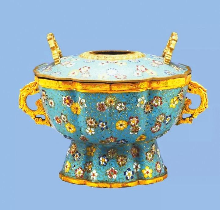 清代掐絲琺瑯團花紋菱花式火鍋(故宮博物院藏)