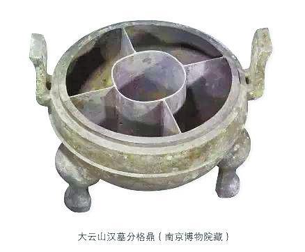 這里說的“五熟釜”,內分數(shù)格,開煮時,中間爐火熾烈,四周湯羹沸騰,可以同時煮熟多種食物。很像北京涮羊肉鍋和重慶九宮格的初級合體。
