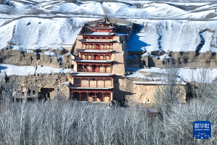 12月15日,甘肅省敦煌市迎來(lái)降雪天氣。雪后的世界文化遺產(chǎn)敦煌莫高窟銀裝素裹,景色如畫(huà)。新華每日電訊記者 郎兵兵 攝