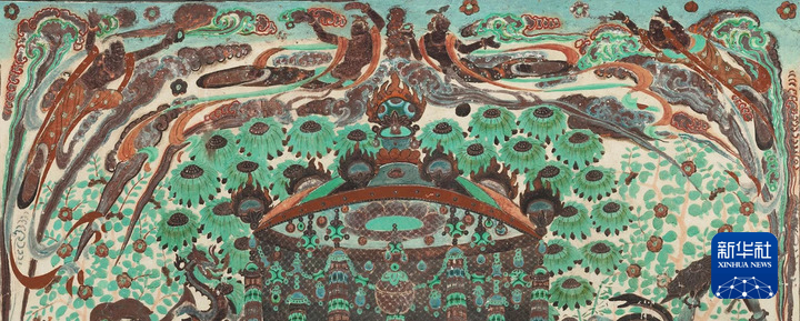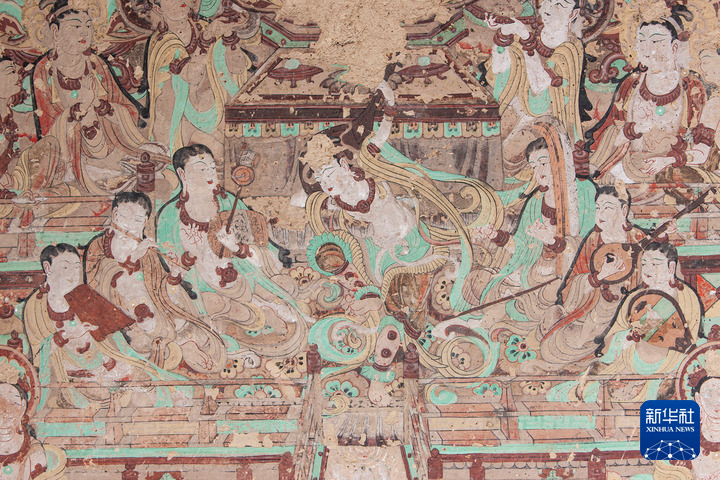 莫高窟第112窟-壁畫(huà)-主室北壁-報(bào)恩經(jīng)變之樂(lè)舞圖。(敦煌研究院供圖)