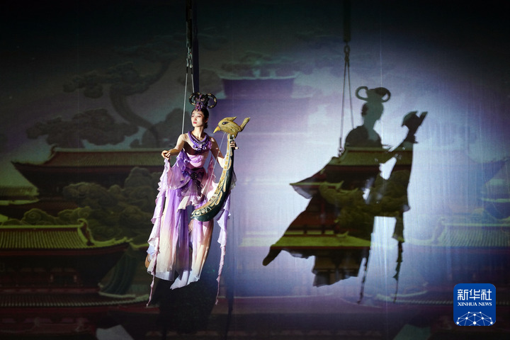 8月9日,演員在《樂(lè)動(dòng)敦煌》中表演。新華每日電訊記者 馬寧 攝