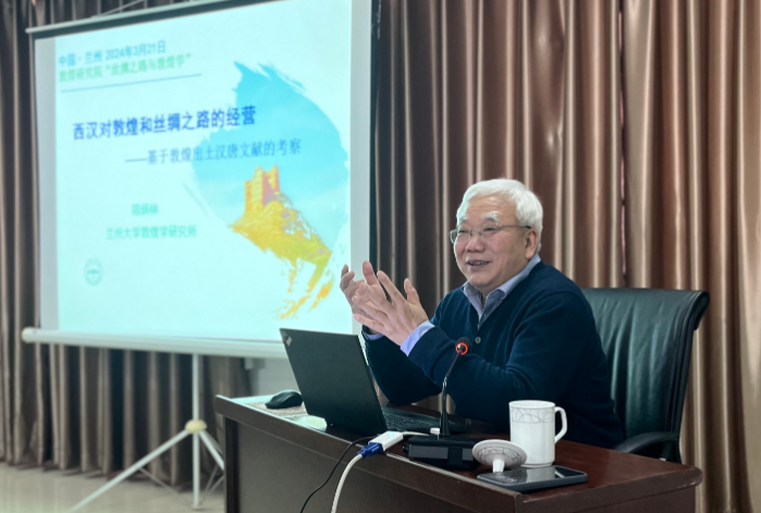 2024年3月21日下午,蘭州大學(xué)鄭炳林教授應(yīng)邀在“絲綢之路與敦煌學(xué)”系列公益學(xué)術(shù)講座主講《兩漢對(duì)敦煌和絲綢之路的經(jīng)營》。講座由敦煌研究院敦煌文獻(xiàn)研究所主辦,趙曉星研究員主持,在蘭州分院舉行。我院專家學(xué)者,蘭州大學(xué)、西北師范大學(xué)、西北民族大學(xué)師生,及敦煌學(xué)愛好者50余人現(xiàn)場參加了此次學(xué)術(shù)活動(dòng)。