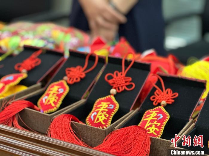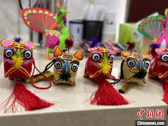 5月7日,“甘肅省2024年‘文化和自然遺產日’非遺宣傳展示展銷主會場系列活動暨第十九屆慶陽香包民俗文化節(jié)”新聞發(fā)布會舉行。圖為發(fā)布會現場展示的香包制品。楊娜 攝