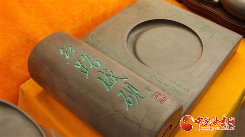 嘉峪石硯,取材于嘉峪山后的黑山峽深處,故又稱“黑山石硯”,是目前所知最早的古石硯之一。這種石硯質堅而細、扣之有聲,發(fā)墨快而不損毫,儲墨久而不干,“有史記載的三百多種石硯中,只有嘉峪石硯是帶有銘文出土的。這對于石硯的研究具有重要的史料價值。”劉宗學向實踐團成員系統(tǒng)地講述了嘉峪石硯的傳承歷史,并展示了自己以絲綢之路為主題創(chuàng)作的“絲路盛硯”組合石硯。這套石硯主要以甘肅十四個地州市的建筑、景觀、歷史人物為內容,體現(xiàn)了甘肅省的根脈文化、黃河文化、長城文化、絲路文化、紅色文化等五大文化,表現(xiàn)出甘肅在絲綢之路經濟發(fā)展與文化交流中的重要作用。