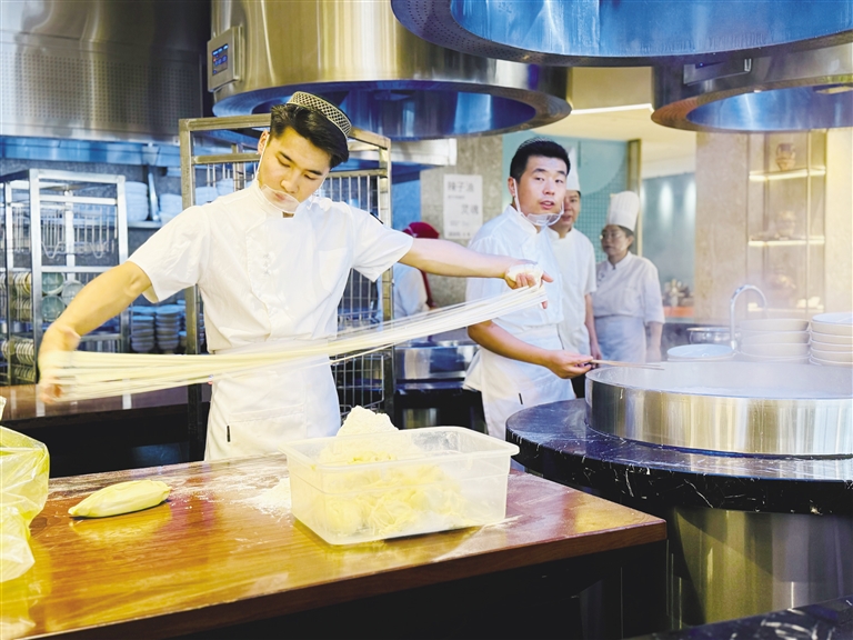 百舸爭流,千帆競渡。當下,蘭州牛肉拉面行業(yè)紛紛在提質(zhì)升級,更新迭代。近段時間以來,蘭州牛肉拉面行業(yè)的后起之秀——周達·觀金城精品牛肉面店成為不少市民游客網(wǎng)紅打卡地標。目前蘭州市內(nèi)有牛肉拉面館1280余家,周達·觀金城精品牛肉面品牌于三年前確立,短短的三年時間里,它是怎么做到在眾多牛肉拉面店中脫穎而出的?它到底有什么特色?和蘭州其他的老字號牛肉拉面到底有什么不一樣?優(yōu)勢在哪里?帶著這一系列的疑問,8月28日,記者走進周達·觀金城精品牛肉面店一探究竟。