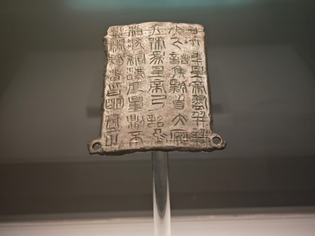 “鎮(zhèn)原縣博物館的鎮(zhèn)館之寶是秦二十六年銅詔版,1976年 4月 1日被鎮(zhèn)原縣城關(guān)鎮(zhèn)富坪村建宅取土的農(nóng)民發(fā)現(xiàn)并上交。在1996年 9月,國家文物局鑒定專家組定為國家一級(jí)文物。這塊銅詔版上有文字5 行,共40字,字跡清晰,線條纖細(xì),字體為小篆。在用筆結(jié)構(gòu)上既有秦代小篆規(guī)矩整飭的風(fēng)范,又保留著大篆文字的某些特點(diǎn)。”鎮(zhèn)遠(yuǎn)縣博物館講解員介紹道。