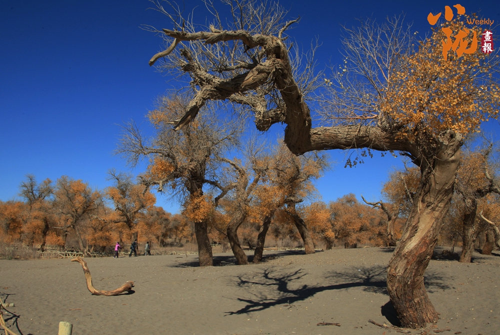 由于風(fēng)沙和干旱的影響,很多胡楊樹造型奇特,姿態(tài)萬千,高大粗壯的身軀,或彎曲倒伏,或仰天長(zhǎng)嘯,或靜默無語,或豪氣萬丈,讓人感受到原始生命的壯美。