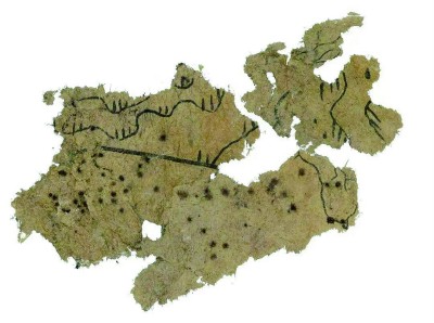 天水放馬灘漢紙本地圖。圖片由甘肅簡(jiǎn)牘博物館提供