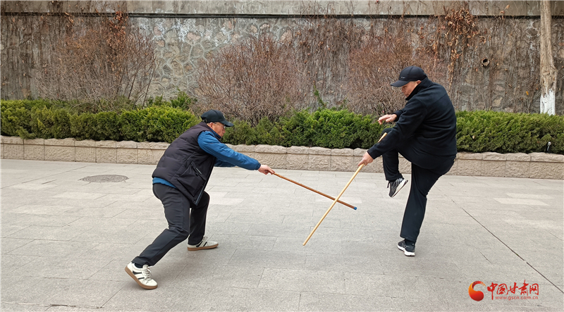 “鞭桿自古就有,甘肅天水、隴南、定西一帶也有習(xí)武者,我父親總結(jié)了蘭州纏海纏桿體系,為鞭桿百花園再添新力量。”王建國介紹蘭州纏海鞭桿體系。