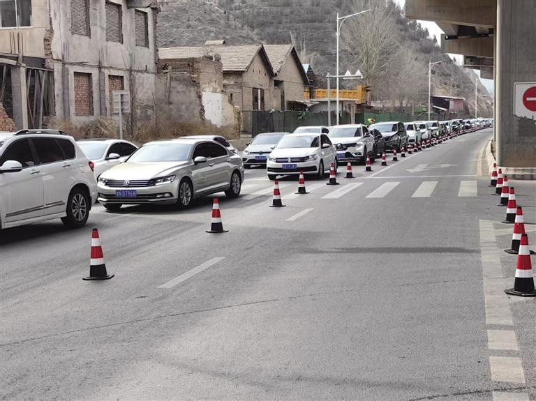 3月22日上午8時(shí),通往大砂坪公墓區(qū)、甘肅臥龍崗人文紀(jì)念園的佛慈大街上車流量明顯增多,雖然車輛行駛速度緩慢,但整體秩序良好。在大砂坪橋公交站處準(zhǔn)備乘坐清明節(jié)掃墓臨時(shí)專線公交車前往公墓祭掃的市民排起了長(zhǎng)隊(duì)。墓園附近,等待進(jìn)入的車輛也排起了長(zhǎng)隊(duì),蘭州市交警支隊(duì)河北大隊(duì)交警引導(dǎo)祭掃車輛安全進(jìn)出墓園停車場(chǎng),保障路面交通暢通。
