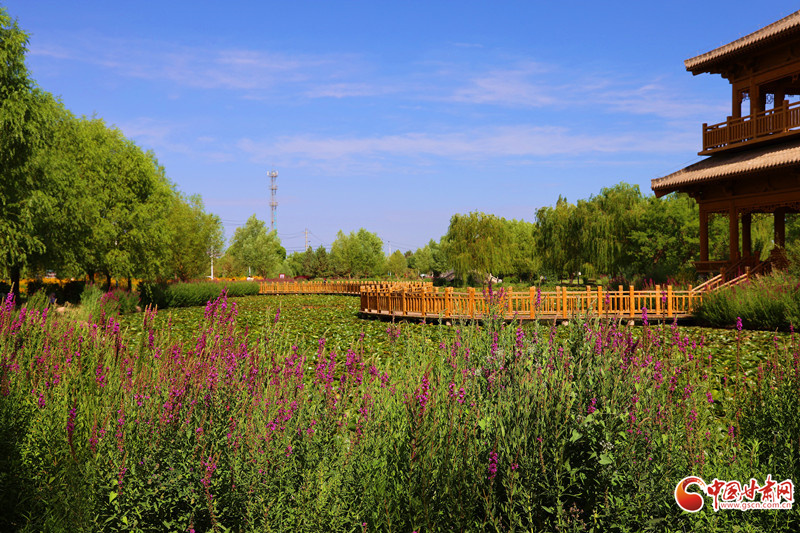 7月8日,雨后的臨澤小城初晴,天空湛藍(lán)。棗鄉(xiāng)風(fēng)情園的睡蓮池畔,成為市民和游客的熱門去處。古亭倒影在平靜的池水中,與盛開的睡蓮相映成趣。市民游客坐在池邊長椅上閑聊,鍛煉的人們也沉浸在這愜意的氛圍中。