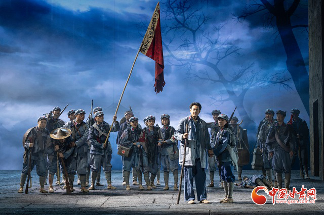 該劇以紅軍長征途經(jīng)甘肅哈達(dá)鋪的重要歷史事件為背景,通過藝術(shù)化的舞臺呈現(xiàn),生動展現(xiàn)了革命先輩的堅定信念與偉大精神。全劇通過人物群像與歷史瞬間的交織,彰顯信仰力量與軍民深情,以時空交織的敘事結(jié)構(gòu),穿插毛澤東與周恩來回憶對話的閃回場景,通過“序—八場—尾聲”的結(jié)構(gòu),串聯(lián)紅軍在哈達(dá)鋪的休整與決策過程,兼具歷史縱深感與戲劇張力。