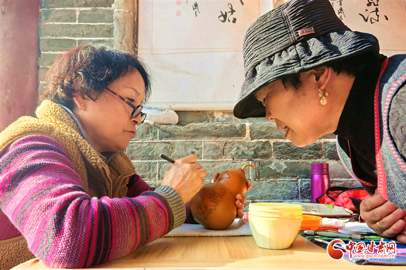 她還走進蘭州開放大學,為熱愛刻葫蘆的老年人手把手地傳授技藝,耐心細致地指導他們?nèi)绾卧谛⌒〉暮J上刻畫出精美的圖案。