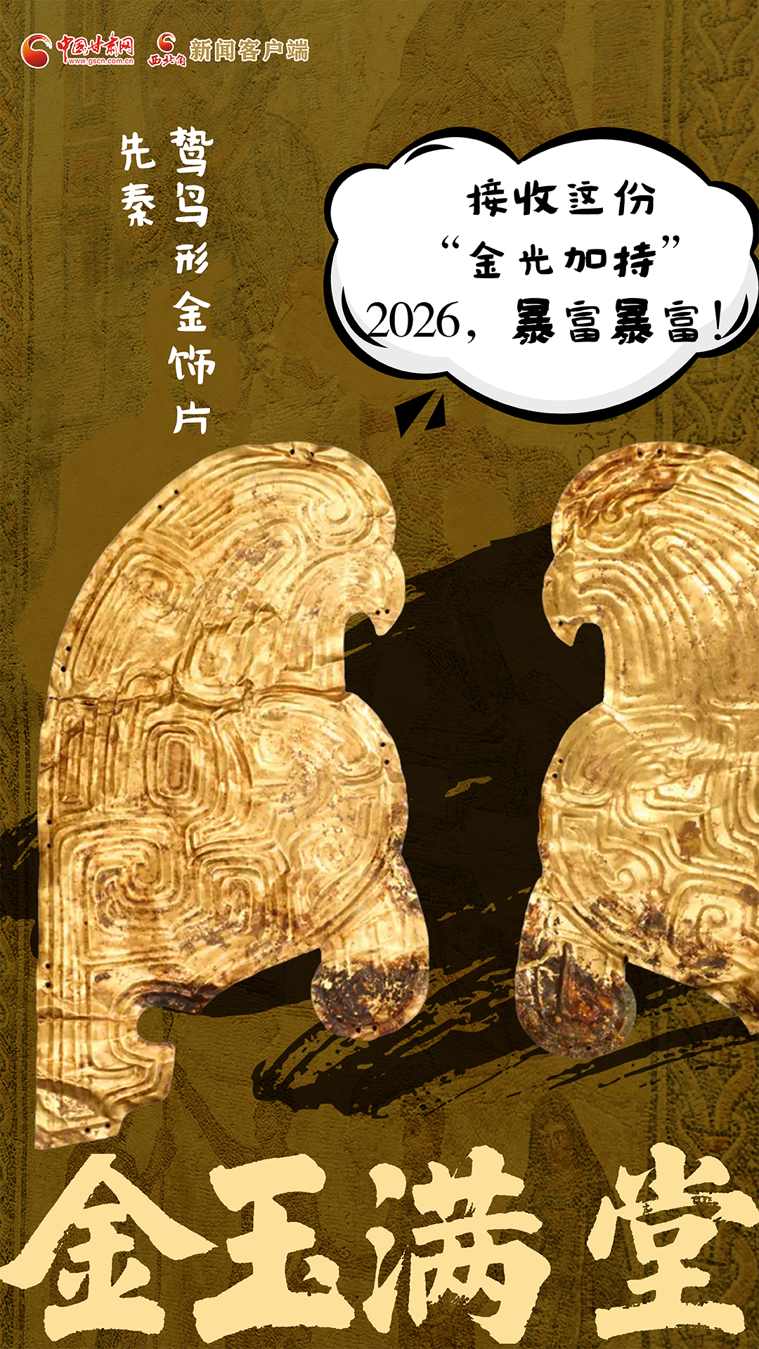 簡介:這些金飾片是秦國早期國君棺槨或車輿上的裝飾。鷙鳥造型威猛,體現(xiàn)了秦人對鳥圖騰的崇拜,印證了“秦人東來”的學(xué)說,具有極高的歷史與藝術(shù)價值。