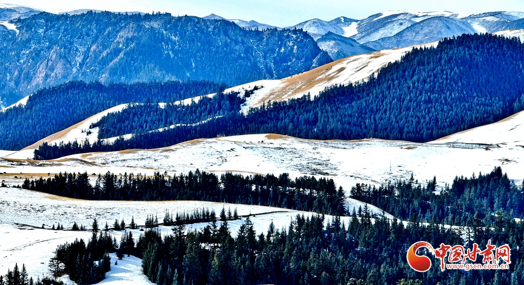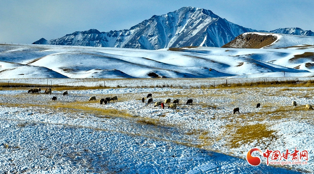 1月24日雪后初霽,肅南裕固族自治縣境內(nèi)的祁連山銀裝素裹,云霧繚繞。雪山、峽谷、森林、草原在皚皚白雪中交相輝映,冬意盎然。牛群、馬群與羊羔在雪中草原上靜靜的覓食,勾勒出一幅人與自然和諧共生的壯美畫(huà)卷。