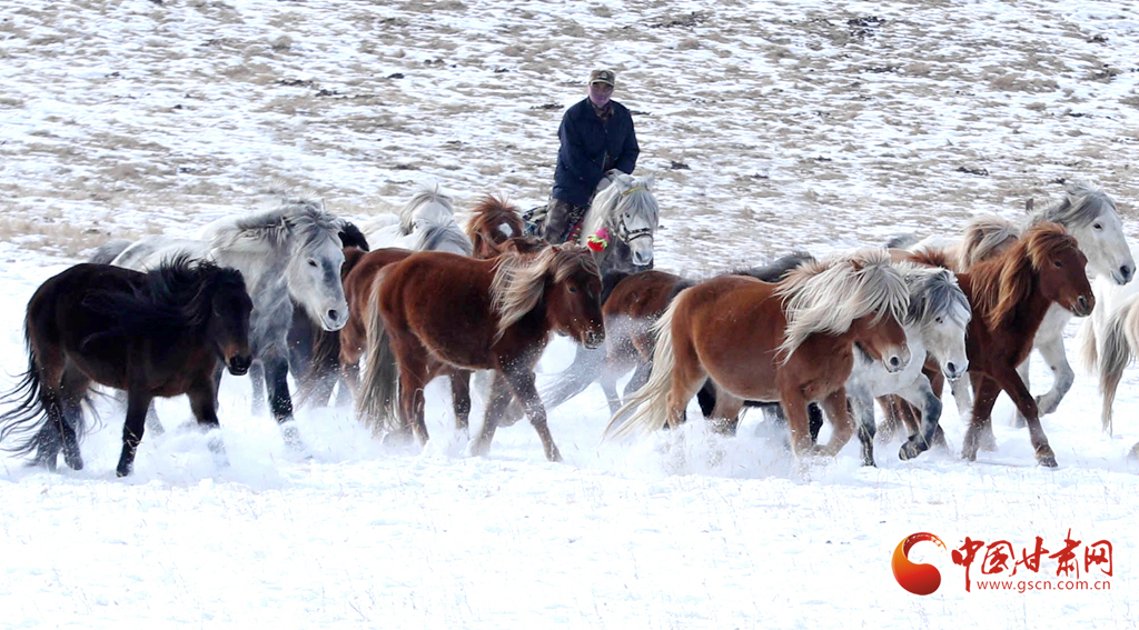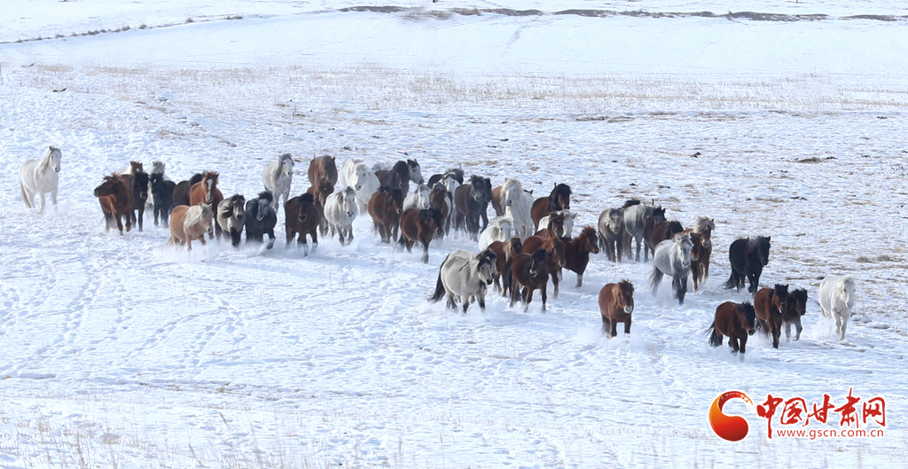 1月30日,張掖市肅南裕固族自治縣康樂草原上,康豐村牧民策馬馳騁,百匹駿馬踏雪奔騰,牧民們用這種獨(dú)特的方式迎接即將到來的新春。