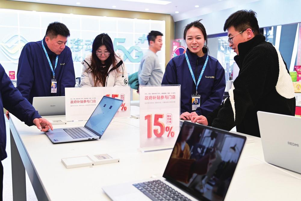 電腦等3C數(shù)碼產(chǎn)品享15%國補補貼,吸引眾多消費者到店咨詢選購。 本版圖片由新甘肅·甘肅經(jīng)濟日報記者瞿娟攝