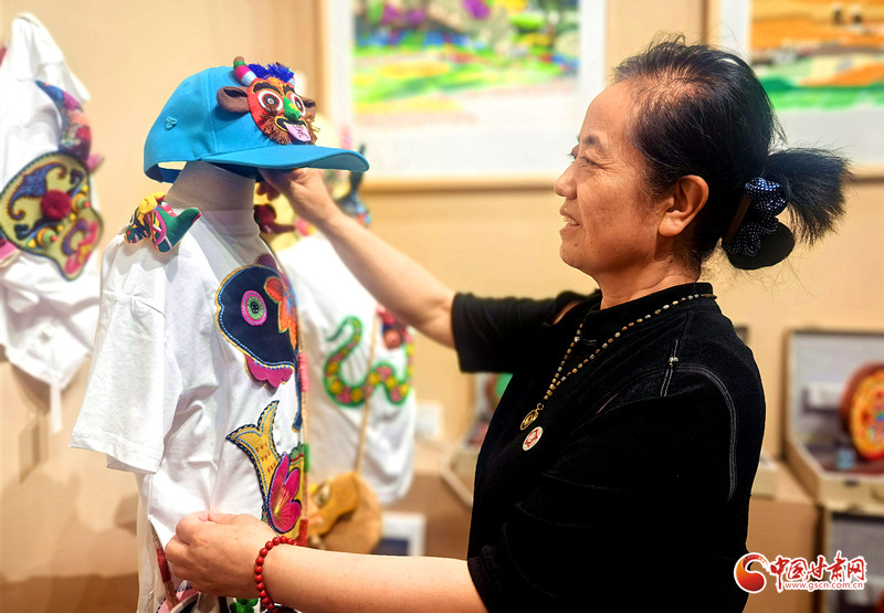趙星萍的藝術(shù)創(chuàng)作扎根鄉(xiāng)土,從剪紙系列起步,拓展至創(chuàng)意香包,如今又融合剪紙、香包、刺繡、布貼畫(huà)等傳統(tǒng)技藝,開(kāi)發(fā)出香包童裝T恤、刺繡帽子、剪紙臺(tái)燈等特色文創(chuàng)產(chǎn)品。其作品既傳承了隴東大地簡(jiǎn)潔明快的藝術(shù)基因,又展現(xiàn)出新時(shí)代的創(chuàng)新活力。