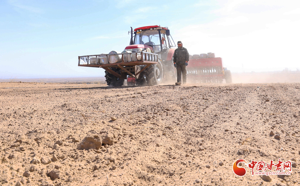4月1日,位于祁連山下的張掖市甘州區(qū)花寨鄉(xiāng)金花寨種植專業(yè)合作社小麥種植基地里,農(nóng)戶們正在駕駛拖拉機(jī)進(jìn)行施肥、旋耕、耙地,準(zhǔn)備播種小麥。