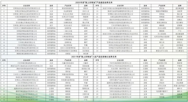 原標(biāo)題:甘肅省“隴上好糧油”區(qū)域公用品牌產(chǎn)品遴選結(jié)果公布 2025年度“隴上好糧油”產(chǎn)品遴選結(jié)果及2021年度“隴上好糧油”入選產(chǎn)品延續(xù)確認(rèn)結(jié)果
