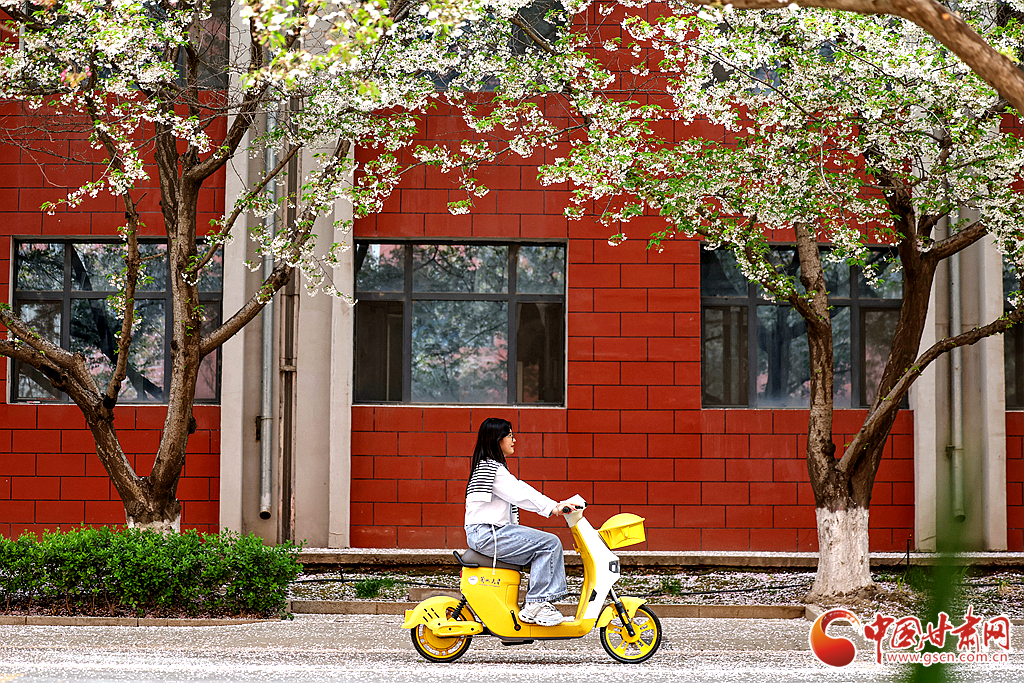 4月5日,蘭州大學校園內(nèi)櫻花盛開。