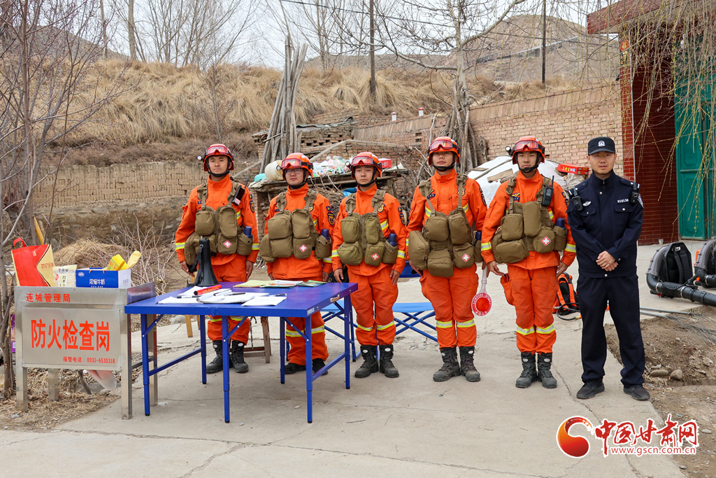 甘肅消防救援機(jī)動總隊蘭州支隊消防救援人員聯(lián)合甘肅省連城國家級自然保護(hù)區(qū)管理局、連城鎮(zhèn)政府、蘭州市公安局森林分局連城派出所在明家莊村阿虎狼溝設(shè)卡檢查。