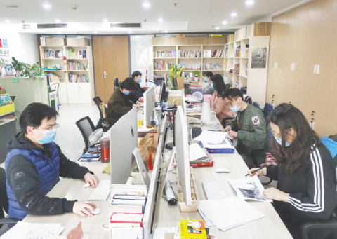 二十一世紀(jì)出版社集團(tuán)南極熊出版公司的員工在工作中。
