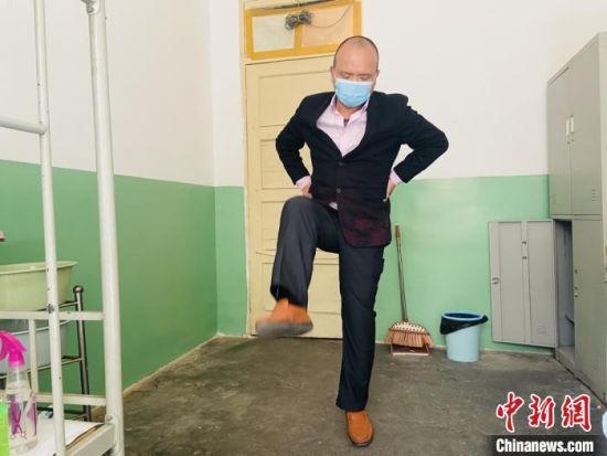 圖為郭平安在宿舍里做廣播體操?!「呖档稀z