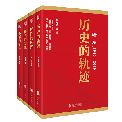 今年正值新中國成立70周年,作為新中國華誕獻(xiàn)禮的著作《跨越》四部曲——《歷史的軌跡》《理性的選擇》《偉大的夢想》《不懈的奮斗》已由崔友平、徐斌、顧保國、董振華等專家學(xué)者編寫完成并出版。本套叢書立足于馬克思主義的立場、觀點和方法,從歷史的維度、理論的維度、實踐的維度和空間的維度去回顧新中國成立70年來實現(xiàn)偉大跨越的歷史軌跡,去分析中國道路理性選擇的自覺自信,去展望中華民族偉大復(fù)興的偉大夢想,去探索通過不懈奮斗走向光輝彼岸的現(xiàn)實路徑,旨在通過學(xué)理論述、案例分析和現(xiàn)實經(jīng)驗,揭示中國共產(chǎn)黨成功密碼的歷史意義和世界意義。本書既是對歷史現(xiàn)實的回顧,又是對歷史經(jīng)驗的總結(jié),從歷史出發(fā)延伸到未來,從藍(lán)圖出發(fā)延伸到實踐,既有深邃的思想內(nèi)涵和理論功底,又有明確的方法論原則,構(gòu)建了一個內(nèi)容豐富、論述嚴(yán)謹(jǐn)、語言通俗的理論體系。