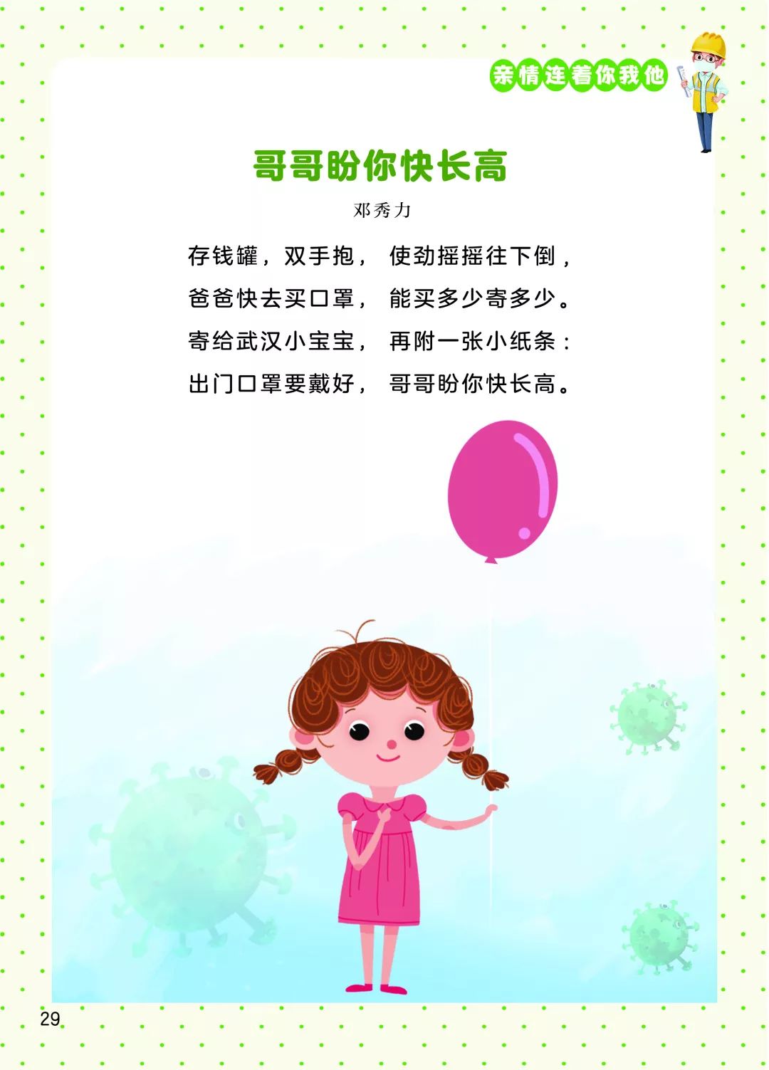 新冠肺炎疫情爆發(fā)以來,全國人民積極投入到疫情防控阻擊戰(zhàn)中,孩子們、兒童文學(xué)作家也紛紛發(fā)聲,創(chuàng)作了大量優(yōu)秀的童謠。每一首童謠是一聲鼓勁的吶喊,匯集起來就是嘹亮的戰(zhàn)歌;每一首童謠點亮一束希望的光,光束匯聚就是光明的未來。