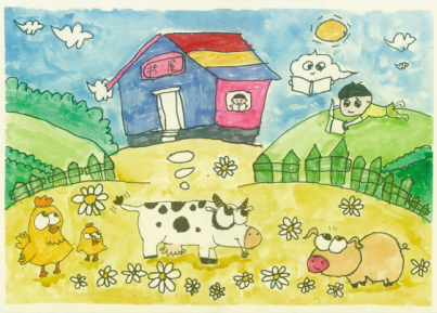 面對這部由中國少年兒童新聞出版總社出版的《“我的書屋·我的夢”——2019年農(nóng)村少年兒童閱讀實踐活動優(yōu)秀作品集》,讓人欣喜的是,它不但有文字,還有很多入選的畫作,孩子們運用了大膽的色彩、大膽的想象、大膽的線條,恣肆地描繪著他們的夢和憧憬,這些夢根植于他們生活的山鄉(xiāng)曠野,又呼應著遠方、星辰與大海。我尤其記得其中的一幅,那是一座高聳的書塔,那種拔地而起、直上云霄的氣勢,是一種象征,是一種隱喻,是這一代孩子想站到巨人肩上的渴望,是他們對祖國明天最美好的祝福和期待,也是中華民族必將走向復興的昭示。