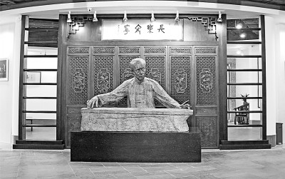 錢仲聯(lián)先生是學(xué)者,以研究古代詩詞著稱,尤其清詩研究,是中國最高權(quán)威。錢先生研究古代文學(xué),不僅能夠旁征博引,發(fā)人所未發(fā),更重要的是所有古代文學(xué)形式詩、詞、駢體文,錢先生都能如同古人一樣進(jìn)行創(chuàng)作。錢先生是1981年國家首批博導(dǎo),學(xué)界不僅重視他的學(xué)術(shù)成就,同時(shí)崇敬他的詩人身份。王元化稱錢先生為“一代詩豪”,深得學(xué)界贊同。那么,一位每天沉浸在古典世界的學(xué)者,應(yīng)該怎樣雕塑呢?紀(jì)峰創(chuàng)作的錢仲聯(lián)先生銅像是座半身像,我以為可以稱作“思想者錢仲聯(lián)”。錢先生緊閉雙唇,雙目微微下視,凝視不動(dòng)。寧靜的表情,頭腦里卻在翻江倒海,風(fēng)云變幻。雖然面對的只是三尺書桌,但思想的深處,卻是上下五千年,縱橫八萬里。這是學(xué)者的獨(dú)特世界,平靜的海面平衡著深海的波濤洶涌。錢先生非常喜歡這座雕塑,臨睡前要用一方毛巾蓋上,說該休息了。早上,進(jìn)入書房的第一件事,就是拿掉毛巾,說該看書了。錢仲聯(lián)先生的最后歲月里,這件雕像成了他的工作同伴。